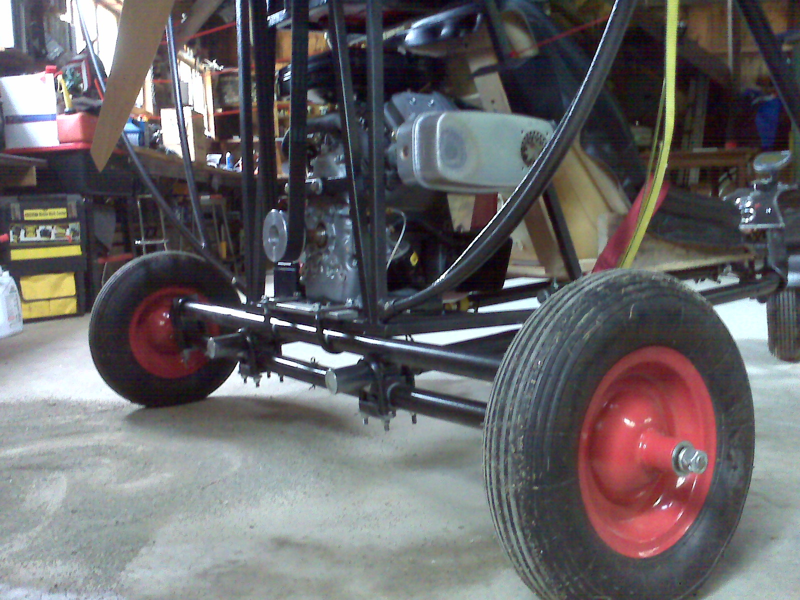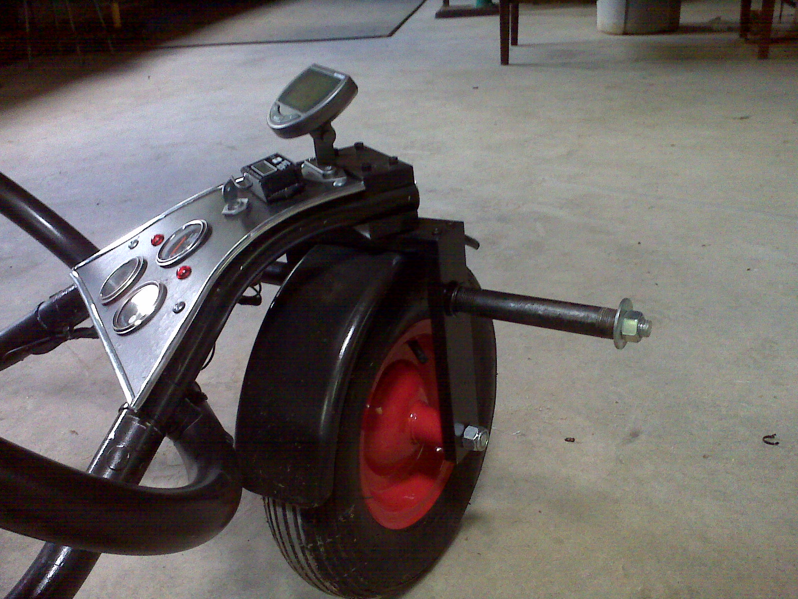 Front wheel w/steel mini-bike fender and steering. Steering is accomplished