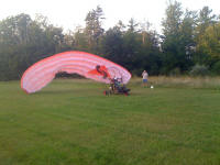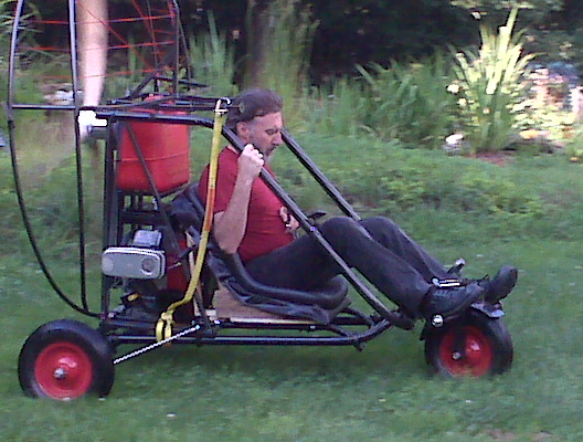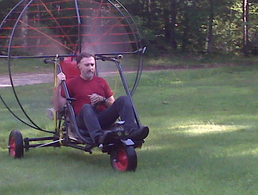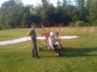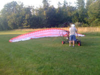 On Sept 9 2009 we ran 'er up for the first time. Took it out of the shop, ran a few grass drags to see if anything would shake loose. It held up fine. So we took it out to the Airstrip. The gods were with us and about 6 PM the winds abated. So we flew it. It flew well so we flew it 'till dark.